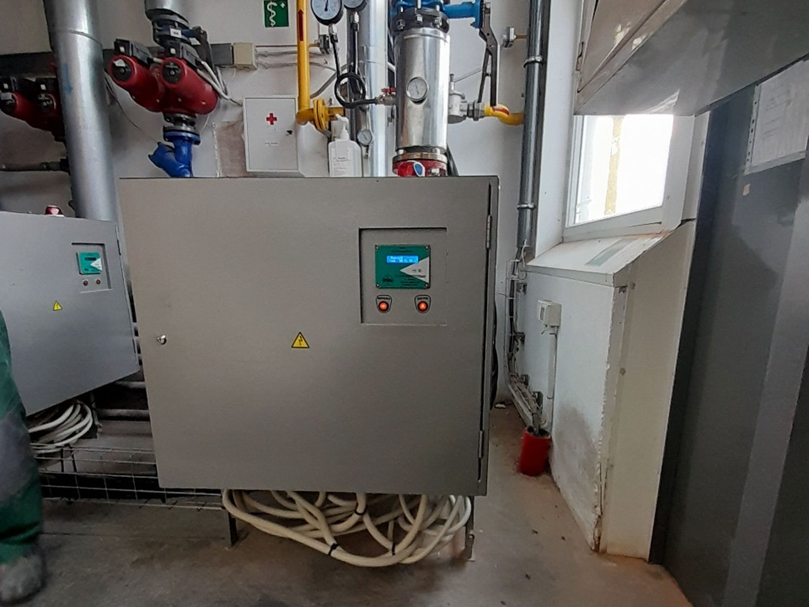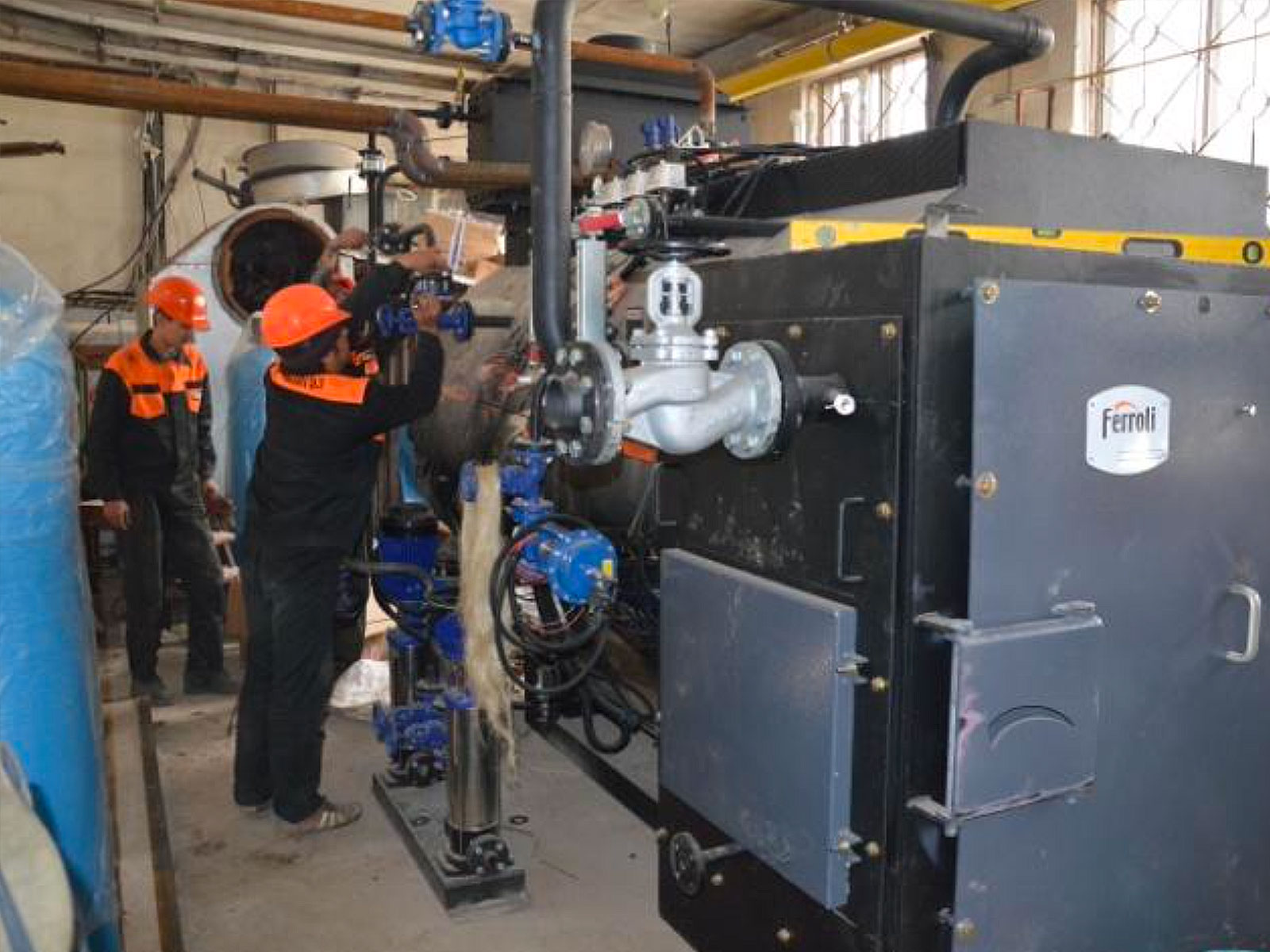 Замість двох старих агрегатів встановлюють два нових енергоефективних котли Eurotherm ЕТ 50 СЕТ, які працюють із ККД 92%. Система теплопостачання переходить на сучасну автоматику з погодозалежним регулюванням, усі трубопроводи та обладнання утеплюють і захищають для збереження тепла;